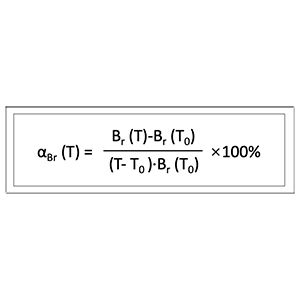 其中,Br(T) 和 Br(T0) 分别是温度 T 和参考温度 T0 下的剩磁。通常选择室温或20℃作为T0,高温T的取值需供需双方根据使用环境确定。如果αBr为正,则表示剩磁随温度升高而增加;如果为负,则表示剩磁随温度升高而降低。